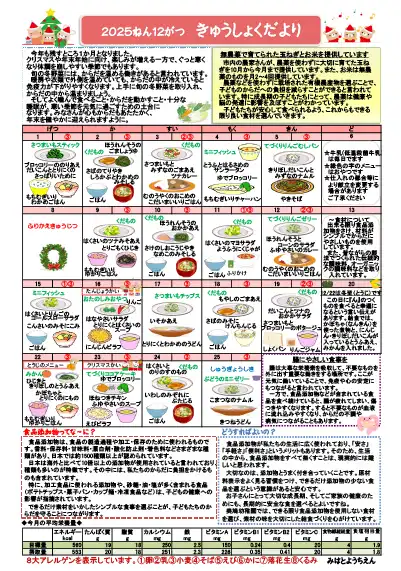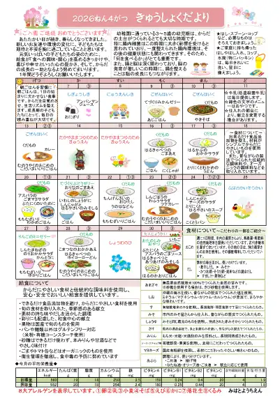 みはとのこだわりの給食内容をお知らせする「給食だより」です。
