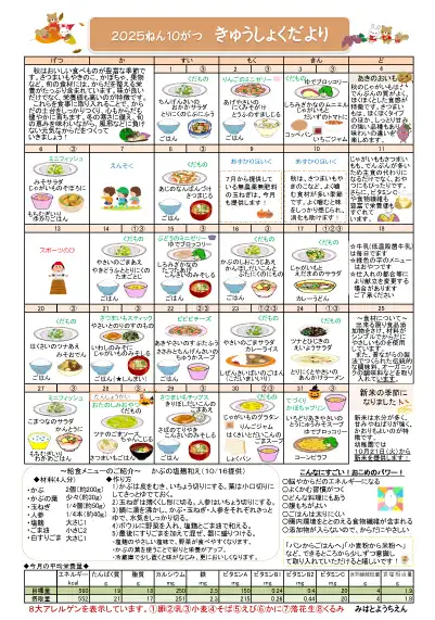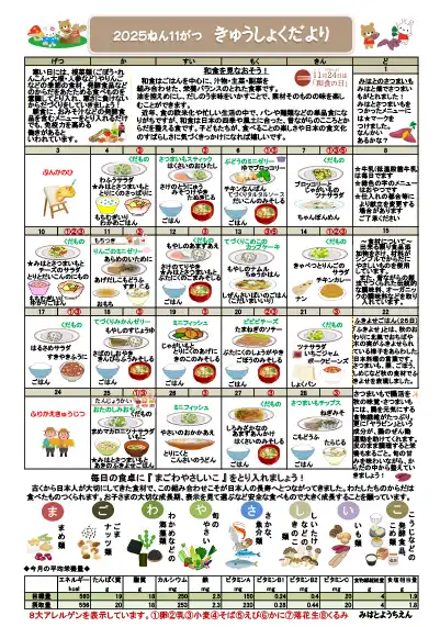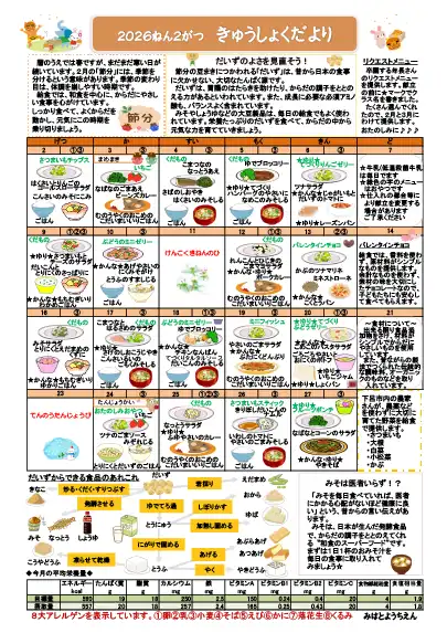 みはとのこだわりの給食内容をお知らせする「給食だより」です。